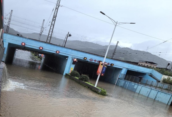 經(jīng)過現(xiàn)場察看,由于短時間降雨量太大,龍津河水位暴漲高于通道出口頂標(biāo)高,河水倒灌至下穿通道導(dǎo)致交通中斷下穿通道水泵房三臺水泵全部啟動抽水也無法滿足排水要求。公司防汛小組到達(dá)現(xiàn)場后,連夜組織人員拉好警戒線,設(shè)置警示標(biāo)志,防止車輛進(jìn)入下穿通道,并調(diào)度4輛應(yīng)急車輛及時排水并清洗路面;同時,提前與鐵路部門、交警部門聯(lián)系,暫時封閉該段線路。經(jīng)過6小時的不斷抽水,路面已基本暢通,搶險過程未發(fā)生任何險情和人員傷亡。