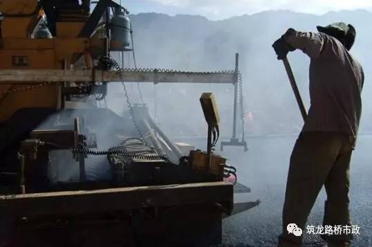 ?。?)用機械攤鋪的混合料未壓實前,施工人員不得進入踩踏。一般不用人工不斷地整修,只有在特殊情況下,如局部離析,需在現(xiàn)場主管人員指導(dǎo)下,允許用人工找補或更換混合料,缺陷較嚴重時應(yīng)予鏟除,并調(diào)整攤鋪機或改進攤鋪工藝。
