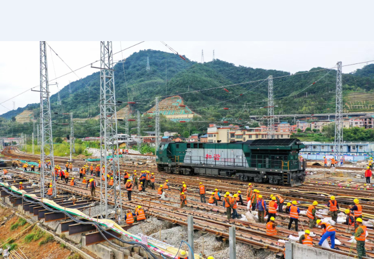 近日,新羅區(qū)城東片區(qū)東外環(huán)下穿漳龍、南龍鐵路框涵工程正式開工。施工現(xiàn)場(chǎng),工人們正在對(duì)路基縱橫梁進(jìn)行加固,而在施工的過程中,營(yíng)運(yùn)列車也正常通行。